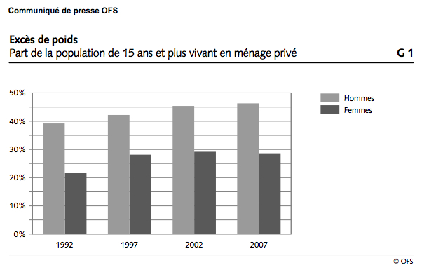 NdG – El nuevo estudio de la Oficina Federal de Estadística, Ofs, lo comprueba, un tercio de la población suiza presenta un exceso de peso, 8% sufre de obesidad y sólo dos de cinco personas realizan suficiente ejercicio durante sus horas libres.