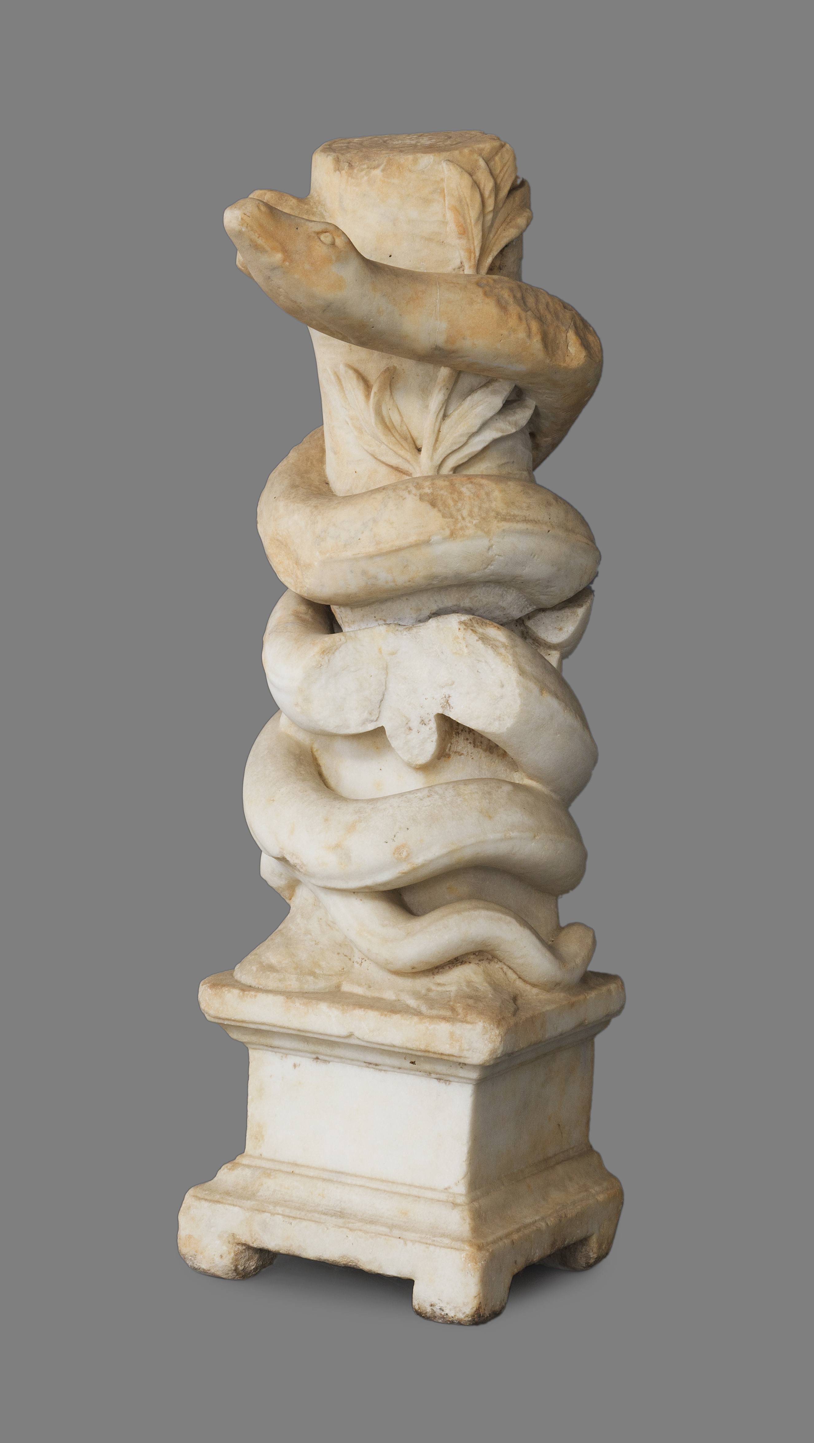 - Una columna romana de mármol, representando al dios Delfos Python derrotado por Apolo fue vendida en CHF 103.000, es decir más de 90 mil francos de su valor estimado.
