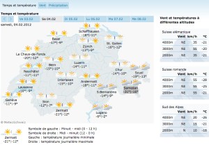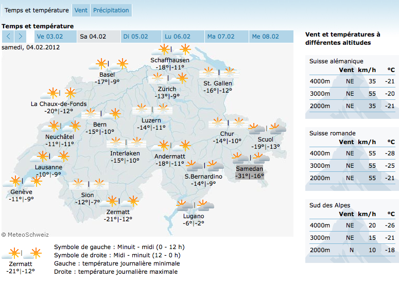 Como lo demuestran los mapas del país para los próximos días, las temperaturas en Ginebra no sobrepasarán los -4C (24F), con temperaturas similares en el resto del país.