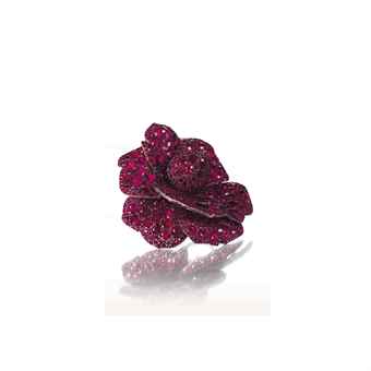 Por su belleza, la estrella de la venta es un broche de rubíes y diamantes o camelia del 2003 que pensaba se vendería en unos 1.2 millones de dólares. Sin embargo hace pocos minutos se anunció que la joya se vendió por más de 4 millones de francos.