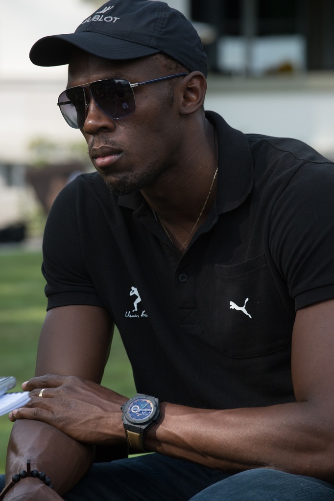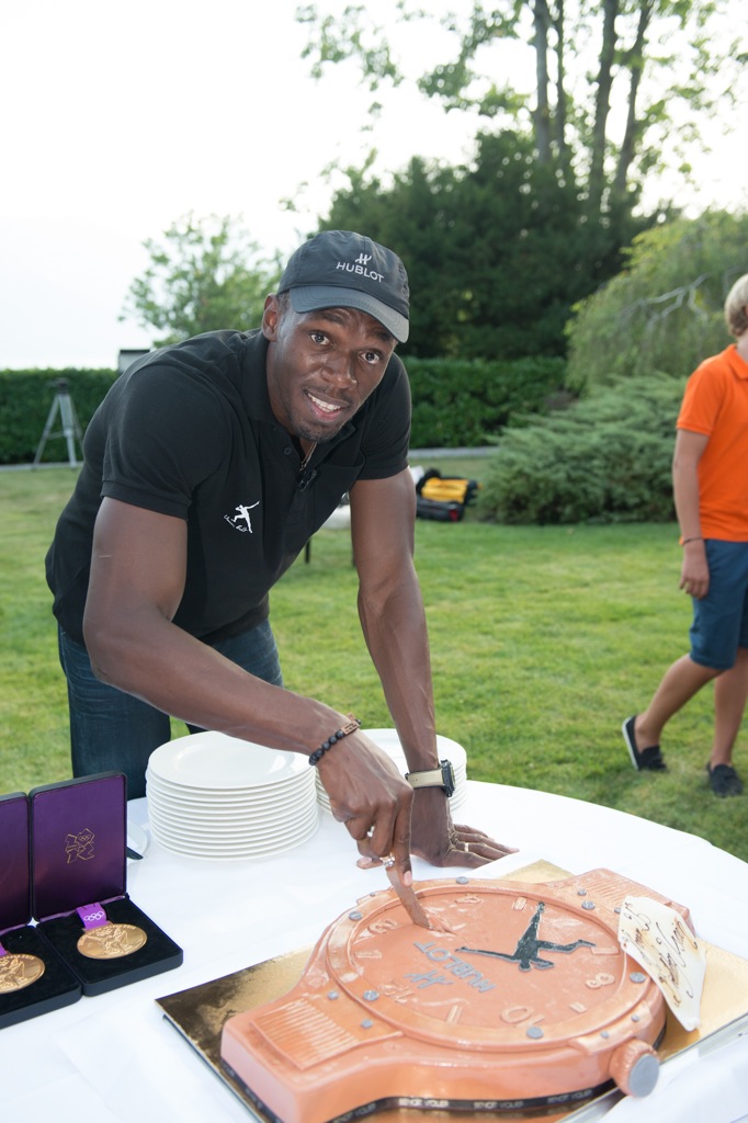 Bolt fue invitado a un recorrido de los Alpes en helicóptero cortesía de la relojería suiza de lujo Hublot, quienes además invitaron al famoso a que asistiera a una reunión en su honor en la casa del presidente de la compañía (una mansión cerca a la región del Lago de Ginebra, dice el comunicado de prensa).