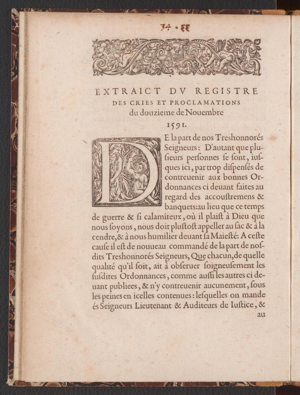 El documento que verá abajo por ejemplo, es une edicto ginebrino formulado en los días en que la ciudad de Ginebra era calvinista y en el que se prohíbe que las mujeres utilizasen argollas o cierto tipo de zarcillos bajo pena de castigo.
