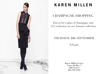 GINEBRA, SUIZA – Para las damas en Ginebra a quienes les gusta Karen Millen, he aquí una buena noticia. La súper exclusiva boutique de la marca británica abre sus puertas el jueves 20 de septiembre para una venta especial con el 15% de rebajas de la colección de otoño 2012, acompañado por una copa de champaña.