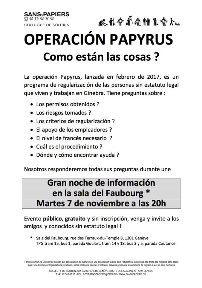 La Asociación Sans-Papiers Genève proveerá información en castellano y de manera gratuita en la Sala Faubourg en rue des Terraux-du-Temple en el area de St Gervais.
