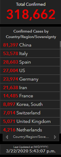 Desde ese entonces, el epicentro se desplazó de Asia a Europa en donde el número de casos y muertes han superado a los ocurridos en el lugar del brote (China) y de contaminación inicial (Corea, Japón, Irán).